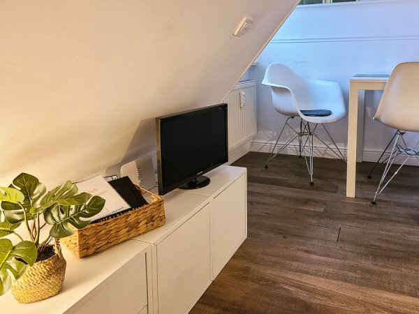 Diese äußerst gemütliche und modern, im nordischen Stil, eingerichtete Maisonettewohnung liegt im Obergeschoss des Hauses. Sie bietet einen faszinierenden weiten Blick über das Wattenmeer.